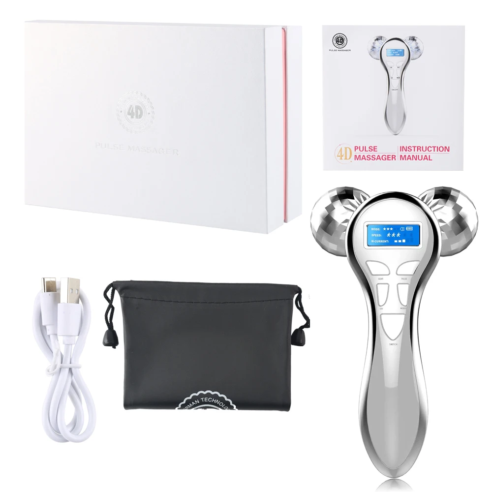 4D Microcurrent Facial Massager Roller Vibration Face Lifting Device V Face Double Chin Remover Pulse anti Wrinkle Skincare Tool